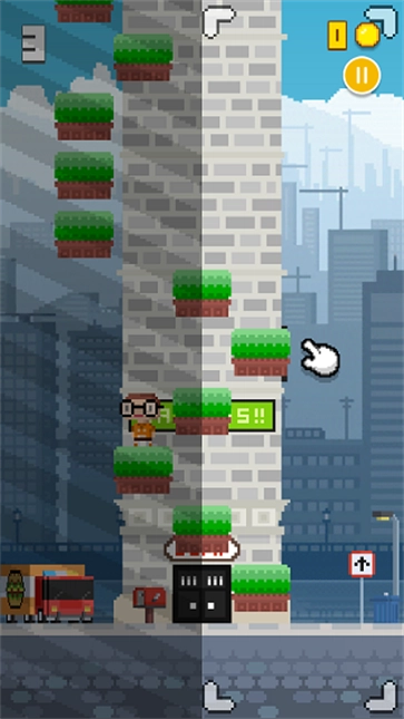 3、游戏里存在着形形色色的小道具与小阻碍。就拿冷气来说,一旦被冷气碰到,玩家就会被冰冻住,得额外操作一次才能解除冰冻状态。还有时空器,它能让玩家向上穿越一段路程。既然有冷气,那火焰肯定也少不了,火焰每隔一阵子就会开始喷射,玩家必须瞅准它熄灭的时机,赶快抓住机会向上跳跃哟!