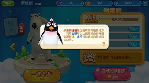 2、训练场原本是倒霉熊提升等级的场所,使用金币能够让倒霉熊实现自身升级,从而变得更强大,金币可通过购买或者闯关来获取。