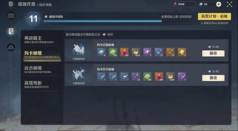 不管是玛卡秘境,亦或是高塔残影,每次奖励都能积攒200到300的阅历,还能获取大量资源材料。在游戏前期,玩家只需聚焦于每日训练与成长导航,快速提升等级便近在眼前。