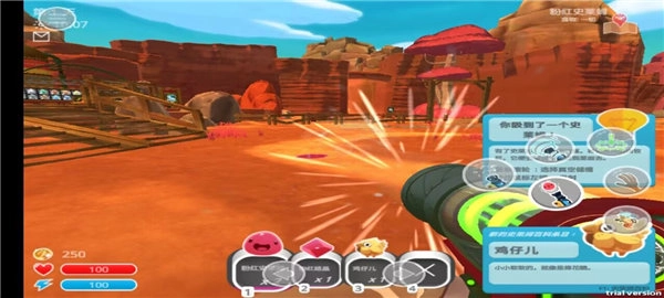 2、在地图中找到史莱姆并点击右边的收集键吸到武器中;