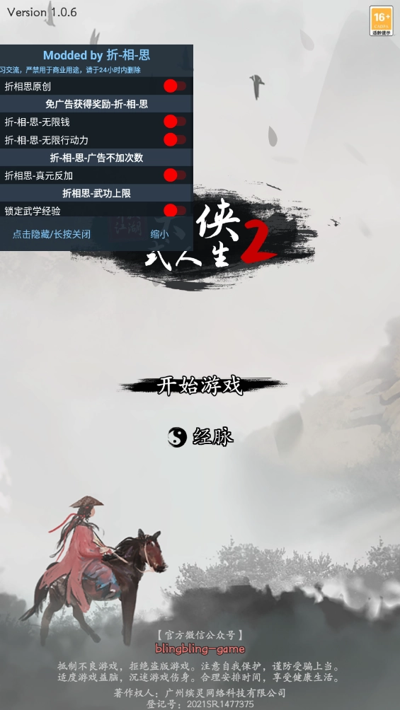《大侠式人生2》是一款以武侠世界为背景的文字冒险游戏,由折相思大神进行了相关处理。该游戏为玩家展现出一个逼真的武侠江湖。在游戏里,玩家能够学习各类武学秘籍,还能加入不同门派,从籍籍无名的小角色一步步成长为声名远扬的一代大侠。此版本带有菜单,且没有广告,感兴趣的朋友不妨来尝试一下。