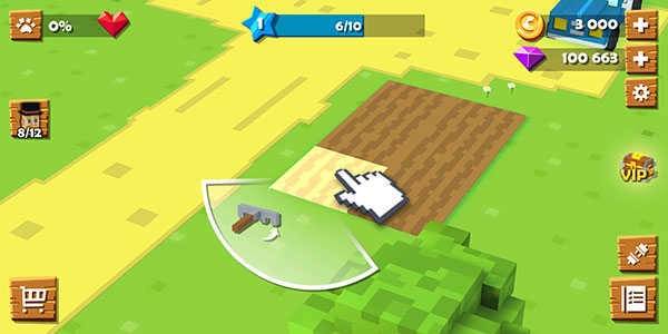 1、当进入方块农场中文版游戏后,我们首先要点击右下角的按钮。