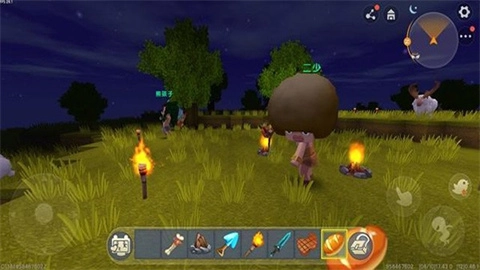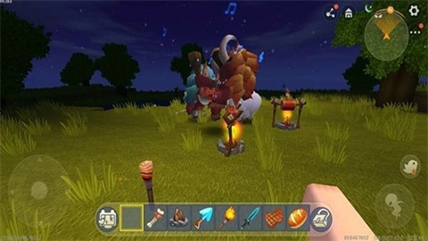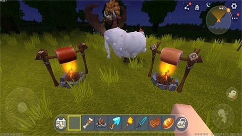 因为野人只在夜间现身,所以首先要耐心等候夜晚来临。紧接着,在地面上安置好篝火,再用火炬把它点燃,之后在篝火上放上生肉开始烤制。
