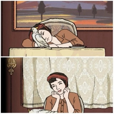 13、再度返回时,看到她正与鹦鹉一同望向窗外。我打开她的包,发现里面有最后的照片碎片2,随后将追踪器放了进去。