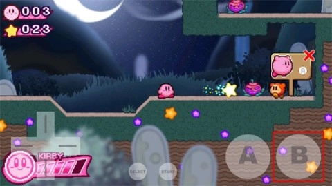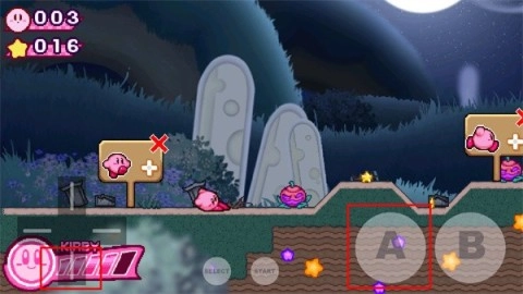 轻点“A键”,卡比即可实现跳跃动作,再次点击此键,卡比便能腾空飞起。若持续点击“A键”,就能维持卡比的飞行高度,助力它顺利跨越各种障碍与危险区域。