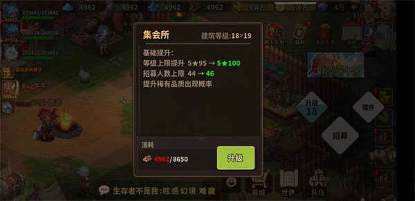 3、点击建筑物的升级选项,即可查看解锁功能的相关情况。