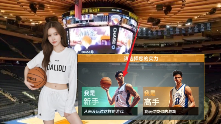 2、依据自身技能水准挑选新手或高手角色,紧接着开展新手教程,通过操控左侧摇杆指引角色走向篮球,时刻做好出击准备。