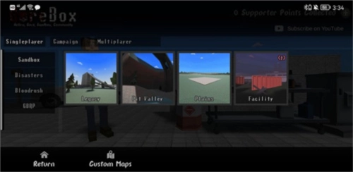 1. 进入游戏之后,点击“play”按钮,便会弹出地图选择界面。此处有四张初始地图可供玩家挑选,除此之外,玩家还能够自定义地图,其创建方式与“我的世界”里创建地图较为相似。
