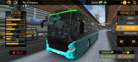 5、选择一辆最契合你的车辆,游戏内有多款常规/柴油、混合动力、电动以及铰接式巴士任你挑选,每一种巴士都具备独特的属性。