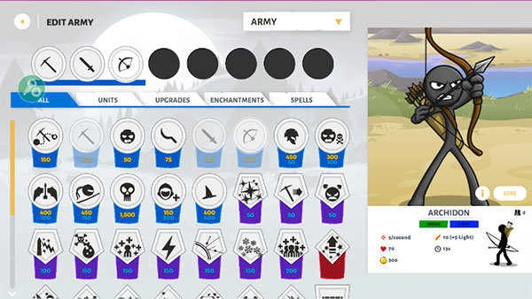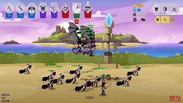 军队建设:采用简约的火柴人题材,呈现出别具一格的战争玩法。在此过程中,你需要收集资源来组建军队,全力以赴去击败对手。