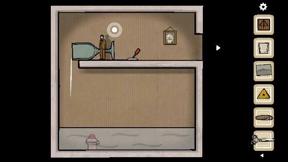22、第一步,操控男主从初始房间进入黄色房间,接着进入粉色房间,之后乘坐电梯抵达棕色房间。操控小人把水杯推倒,随后前往相框处,最后退出小房间。