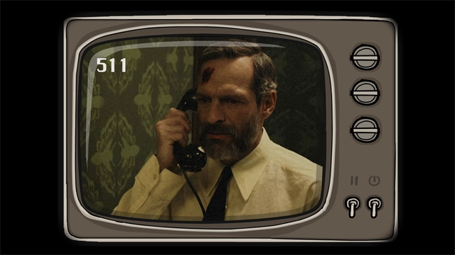 15、把胶片2放进投影机,会得到提示「588」以及五个符号所对应的事物。接着将电视频道调至588,按照画面中呈现的顺序「乌鸦、男人、女人、药瓶、黑影」,找出与之对应的符号。