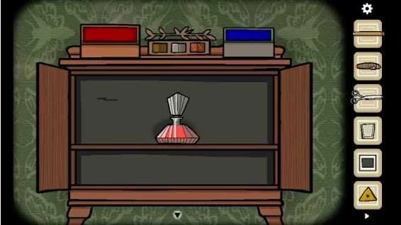 3、开启左边的盒子,从中获取「钥匙」。将旁边盒子上的方块挪动至正确位置,接着打开这个盒子,得到「照片碎片」。点击镜子并穿上大衣,待女人出现后,走到门口。