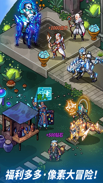 像素战神,一款竖屏放置卡牌游戏,采用经典像素卡通画风,主打策略挂机玩法。玩家通过放置挂机就能获取大量游戏资源,还能组建豪华阵容投入战斗,玩法丰富多元,快来试试!