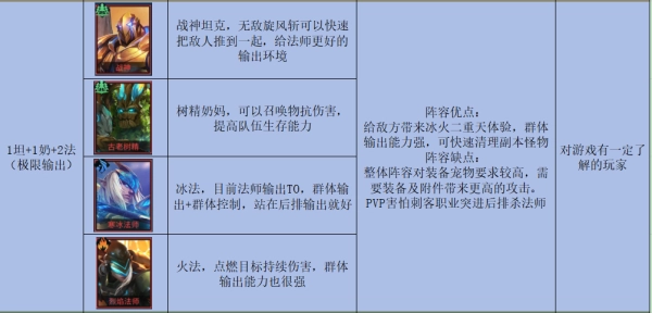 (2)配置为1名坦克 + 1名治疗 + 2名法师