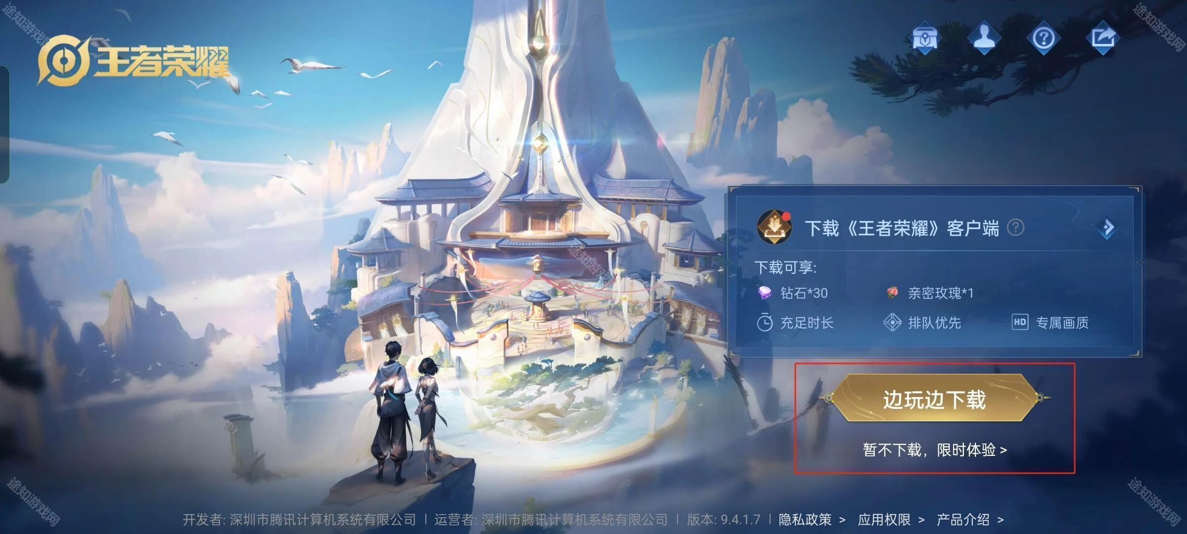 2. 只需直接点击右下角的【暂不,限时体验】,即可开启游戏。