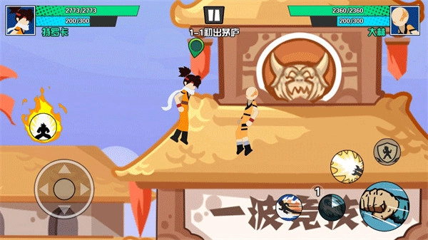 4、接着进入游戏,通过左边轮盘操控人物角色移动,利用右边按键能够发起进攻。