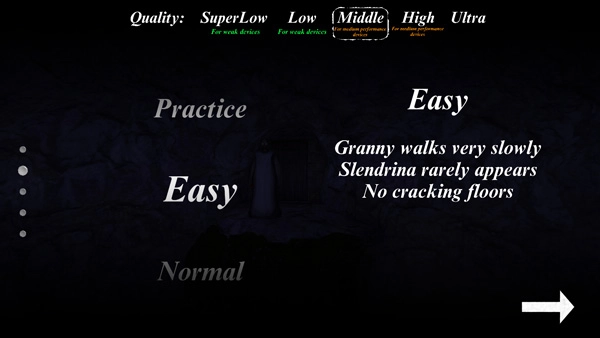 1. 启动《恐怖奶奶5》,点击“play”开启游戏,接着挑选游戏难度与游戏画质。