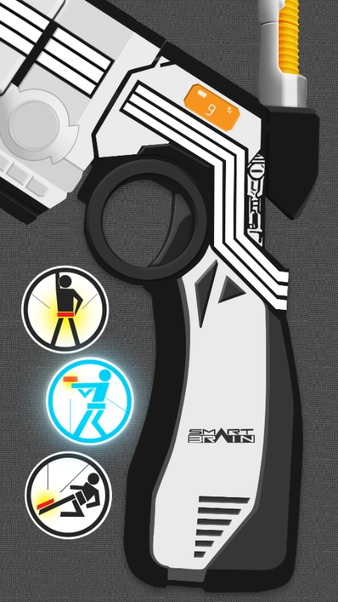 4、这位骑士通过腰带枪进行变身。第一步,点击第一个按钮,完成手枪的组装;接着,点击第二个按钮,进入变身的白热化阶段,此时扣动扳机。