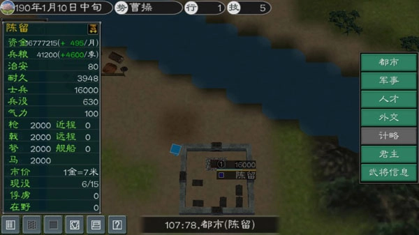 经过训练能够提升士兵的士气,而招募士兵会使城市的治安与气力下降。此外,在势力信息当中,可以查看各方势力的详细情况。