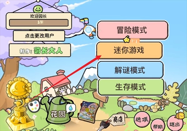 1、玩家进入游戏后,第一步要点击迷你游戏。