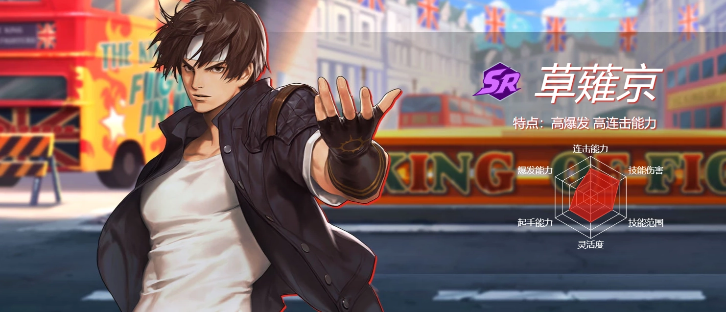 人物简介:守护神器「草薙剑」的草薙一族后裔,从小被父亲教导习武,拥有赤炎之能力,自身也嗜武成痴,经常逃课习武,成为长期留级生。惊人的武学天分和悟性,成就了这位天才格斗少年