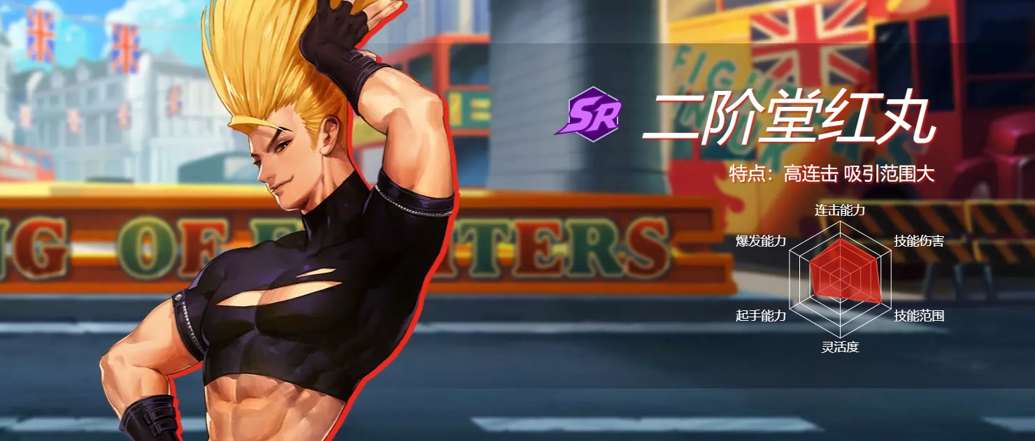 人物简介:出生于财阀家庭,从小就备受宠爱,经常随心所欲,任性妄为,最终成长为一个超级自恋狂。在遇到队友兼对手草薙京之前,红丸的人生都一帆风顺,直到在异种格斗大赛上被草薙京完败