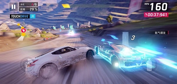 如果想要体验更真实的漂移和转向效果,当然不能错过重力感应模式。重力感应模式操作与智能驾驶一样,触摸左边屏幕漂移,触摸右边激活氮气,不过转向就变成了倾斜屏幕来控制。