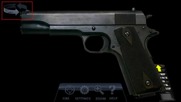 3、位于左上方的循环箭头,其指示的是切换枪支的角度,在不同角度下,所看到的枪支形态各不相同。
