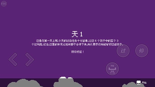 1、游戏核心为护送小朋友过马路,无红绿灯,车辆不停。