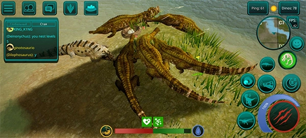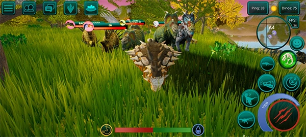 3、食物获取,如果你是肉食恐龙,那么就需要杀死其他玩家的恐龙来获取自己的肉食,如果是草食动物,那么食物就比较简单了,需要特殊的蕨类植物,可以获得足够的蕨类植物!地图上的任何湖泊或水库都可以饮用。