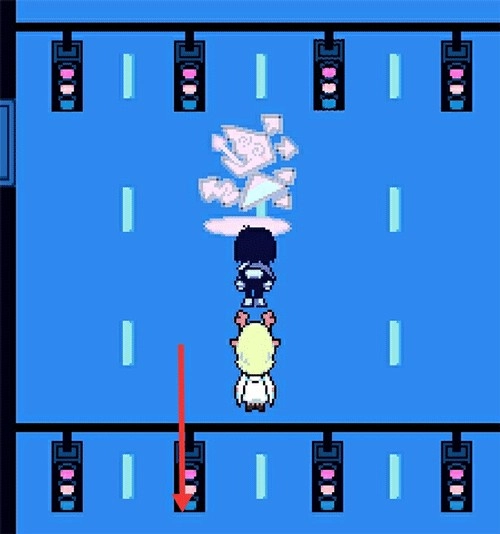 5、剧情推进,玩家操控角色向前探索,解开几个谜题后,Kris与苏西碰面,至此苏西加入了队伍。