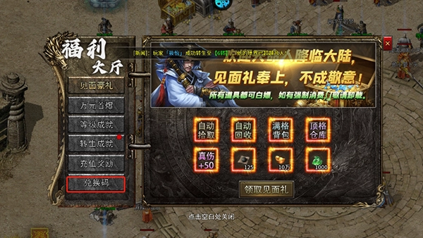 1、上线即可领取自动回收、自动拾取、自动使用、仓库全开等特权