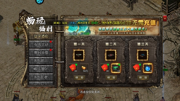 2、首充礼包,杀任意怪555只,领取豪华奖励