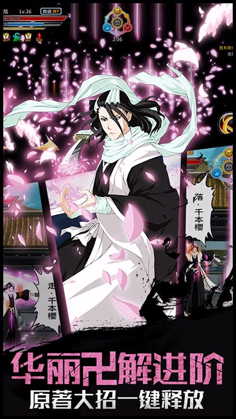 完整复刻了《Bleach死神》中黑崎一护、朽木露琪亚、朽木白哉、蓝染惣右介等数十名高热度角色,并资料篇中持续更新,推出更多篇章的角色,让您逐步走向死神世界的巅峰之路。