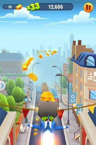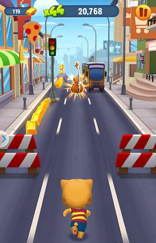 跳跃、滑动和躲闪是《汤姆猫跑酷》最基础也是最重要的操作。会说话的汤姆猫和他的朋友们如同身怀“凌波微步”的武林高手般,在不同的场景中闪转腾挪。无论挡在你前面的是路障、车辆或者水坑,只要及时进行规避操作,便可轻松化险为夷。在此为大家分享一个小窍门:在接触障碍物的一瞬间进行闪避操作,角色并不会“扑街”,只会暂时出现头冒金星的状态,而且绝对不影响后续操作,喜欢玩心跳的小伙伴不妨一试