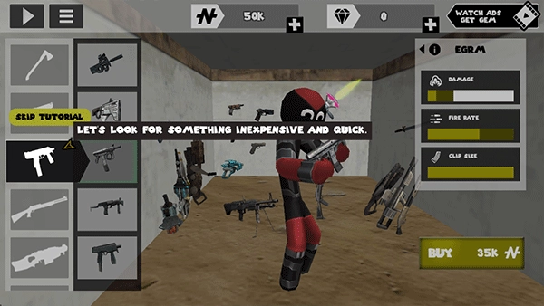 6、每种武器我们可以看到名称、伤害、攻击速度,子弹,价格,比如说AK74需要2500美金。