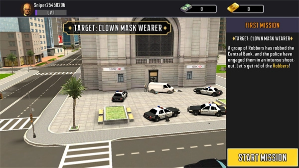 游戏凭借逼真的物理引擎,搭配厚重的枪械手感,让玩家仿若身临其境,置身真实战场。枪响后的回音,以及紧张刺激的音效节奏,共同营造出超强的沉浸感。玩家通过流畅的第一人称视角,能真切感受每一颗子弹呼啸飞驰而出的震撼瞬间。1. 启动幽灵狙击手,轻点界面下方的“START MISSION”按键,开启你的狙击征程。