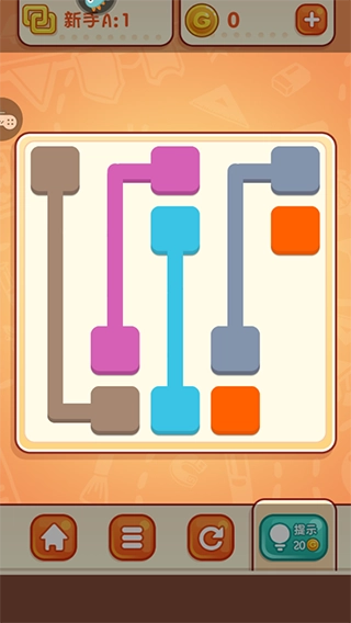炫彩连线玩法是将页面里颜色相同的方块逐一连线,确保连线之间不会交叉,最终让所有空间都被连线填满。