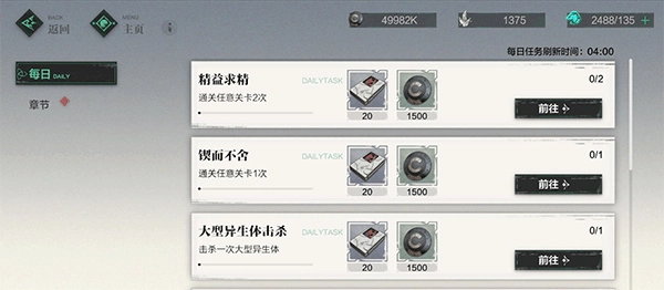 萌新们注意啦,每日任务可是必做项目。做完每日任务,不仅能拿到贡献点数和训练材料,还能凭借活跃度获取感知与源晶碎。每日凌晨4点,每日任务就会刷新,大家务必记得及时完成哦!