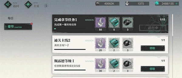 章节任务等同于游戏的主线任务。主线任务不单单会叙述游戏的故事,游戏里诸多指引也都设置在主线任务之中。并且,不少游戏玩法得在完成特定玩法之后才能解锁。在游戏前期,章节任务的难度普遍较低,新手玩家可以优先着手完成章节任务,完成后还能够获取源晶碎、经验等奖励。