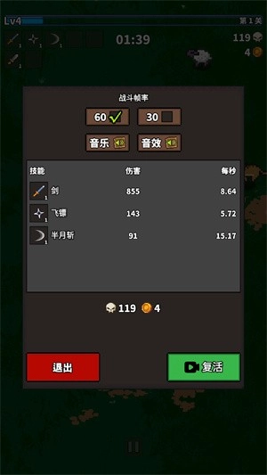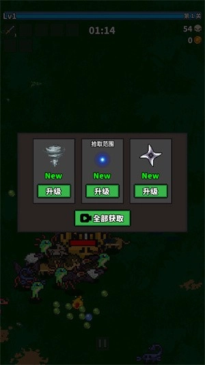 2、技能会自动释放,不需要玩家操作,每次消灭怪物都会积累经验值,满了以后就能选择新技能。