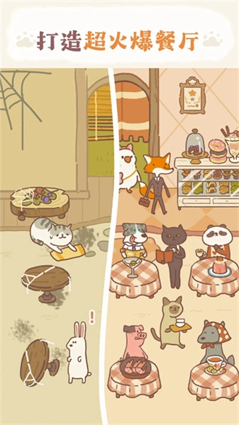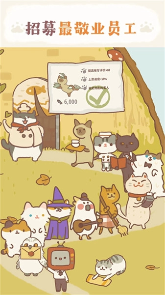 1. 招募可爱的猫咪员工,有布偶、虎斑、大橘!同时得与个性古怪的大厨处好关系。