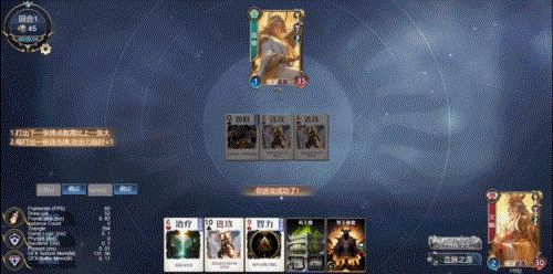 女娲朝着盖亚打出构筑牌【冥王挽歌】,同时又给自己使用了构筑装备牌【药王鼎】,需要注意的是,构筑牌并不参与连击。
