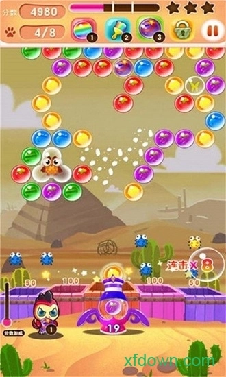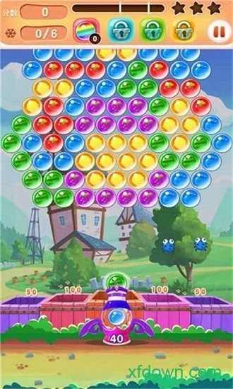 - 消灭关卡内的所有泡泡,就能通关进入下一关的挑战游戏
