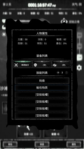 7、点击右下角的属性按钮,还可以查看主角的状态、装备、技能情况。