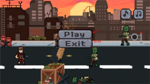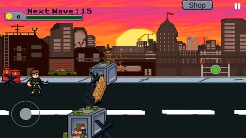 3、此时,玩家会瞧见左边有一名持枪士兵,右边则是僵尸出现的区域。你得阻止僵尸穿过栅栏,只需按住左边的按钮进行上下移动,以此来射击僵尸。每当成功打死一只僵尸,就能获取一枚金币。