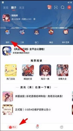 1. 开启该软件,进入【圈子】页面,点击【福利】选项。