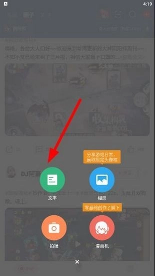 2. 点击后,系统会提示你选择动态的类型。