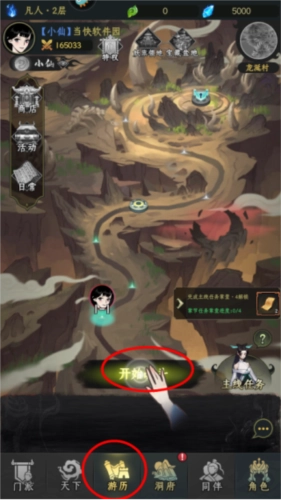 1. 打开游历页面,点击“开始战斗”,随即进入战斗。